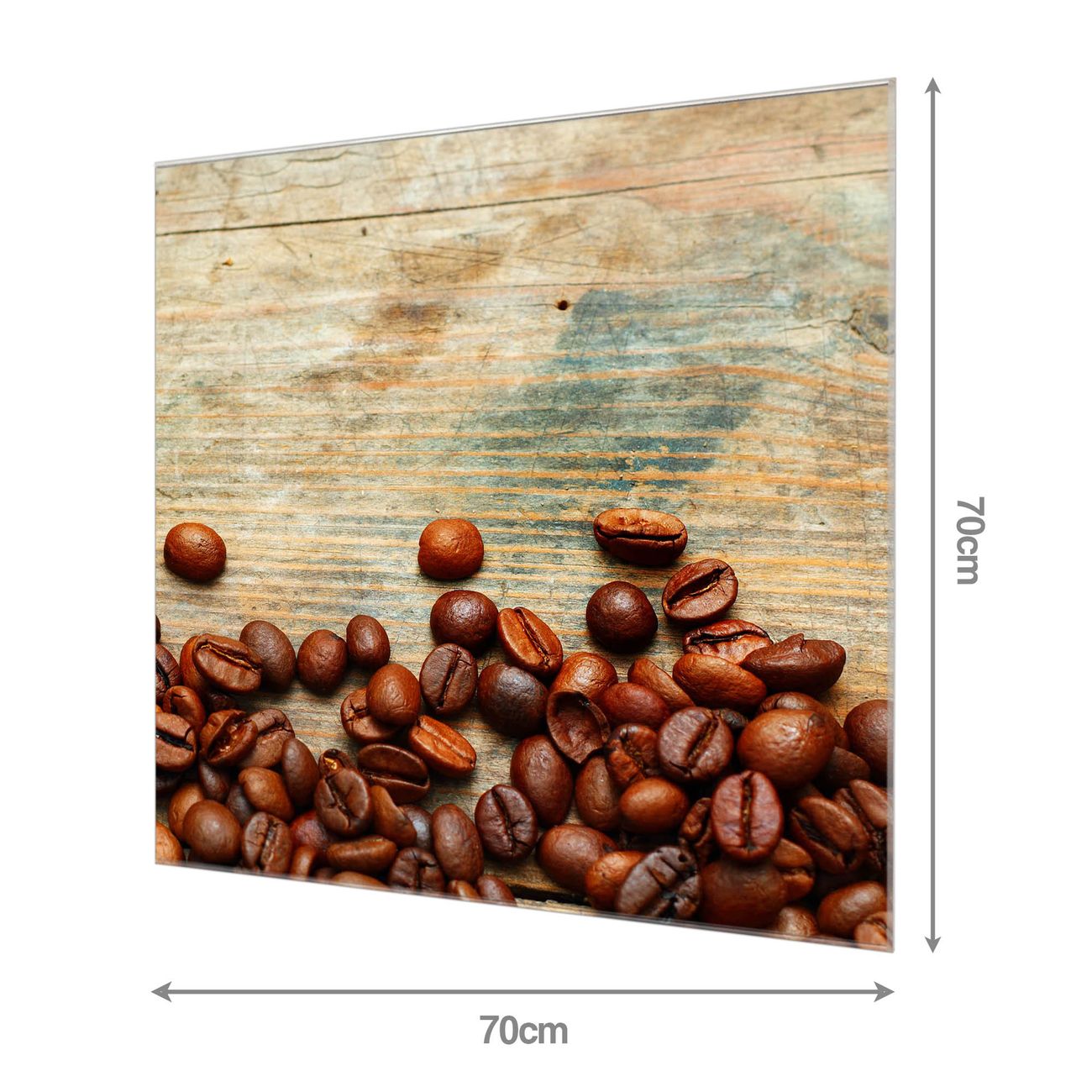 Material: 4mm Sicherheitsglas mit Metallrückwand Eigenschaften: beschreibbar, magnetisch, kratzfest Maße: 70x70x0,6cm, 10,50 kg schwer Motiv Nummer 11698 Kaffeebohnen Zubehör: inklusive 4 Neodym-Magnete