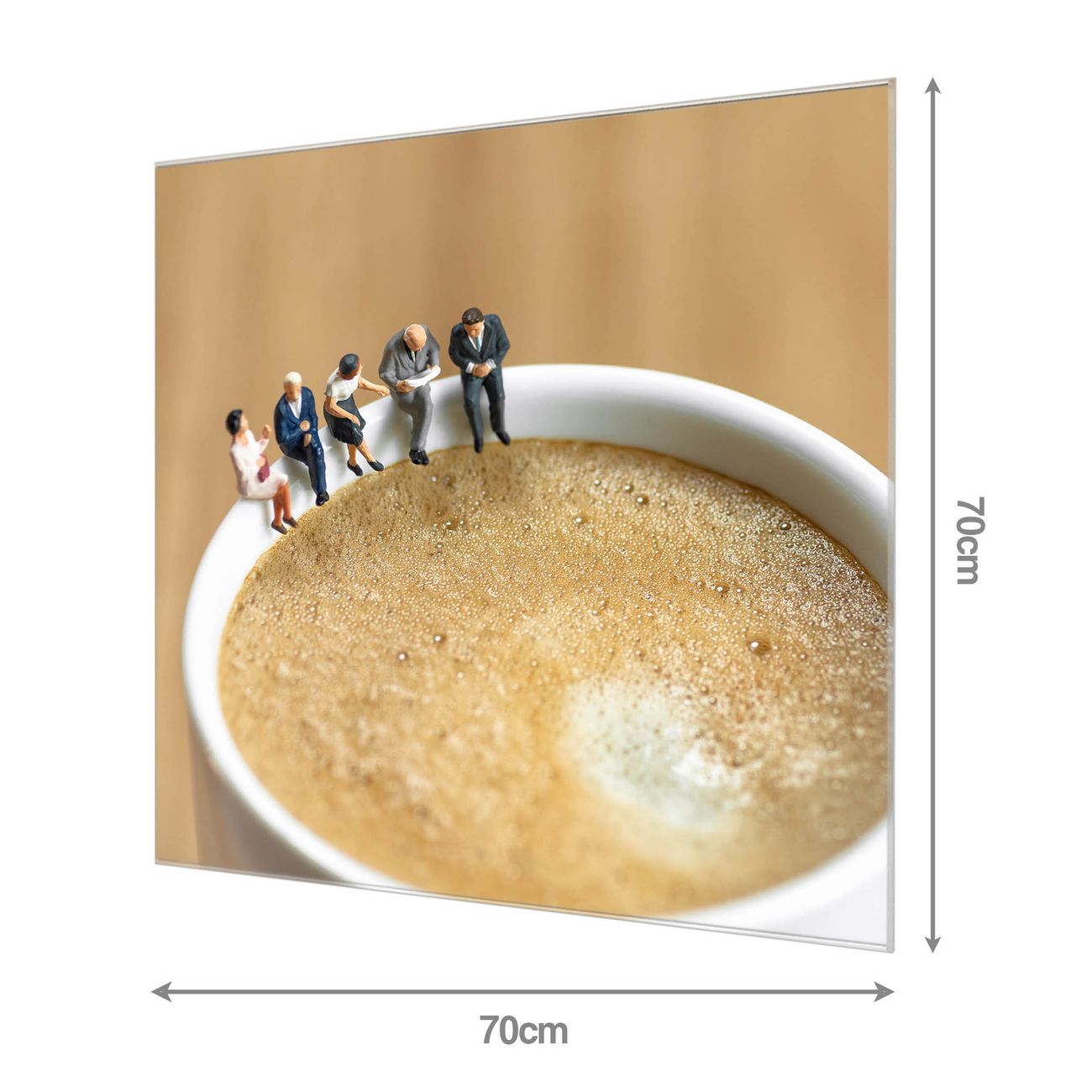 Material: 4mm Sicherheitsglas mit Metallrückwand Eigenschaften: beschreibbar, magnetisch, kratzfest Maße: 70x70x0,6cm, 10,50 kg schwer Motiv Nummer 12427 Kaffeepause Zubehör: inklusive 4 Neodym-Magnete