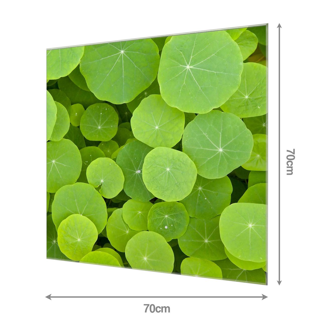Material: 4mm Sicherheitsglas mit Metallrückwand Eigenschaften: beschreibbar, magnetisch, kratzfest Maße: 70x70x0,6cm, 10,50 kg schwer Motiv Nummer 12300 Kapuzinerkresse Zubehör: inklusive 4 Neodym-Magnete
