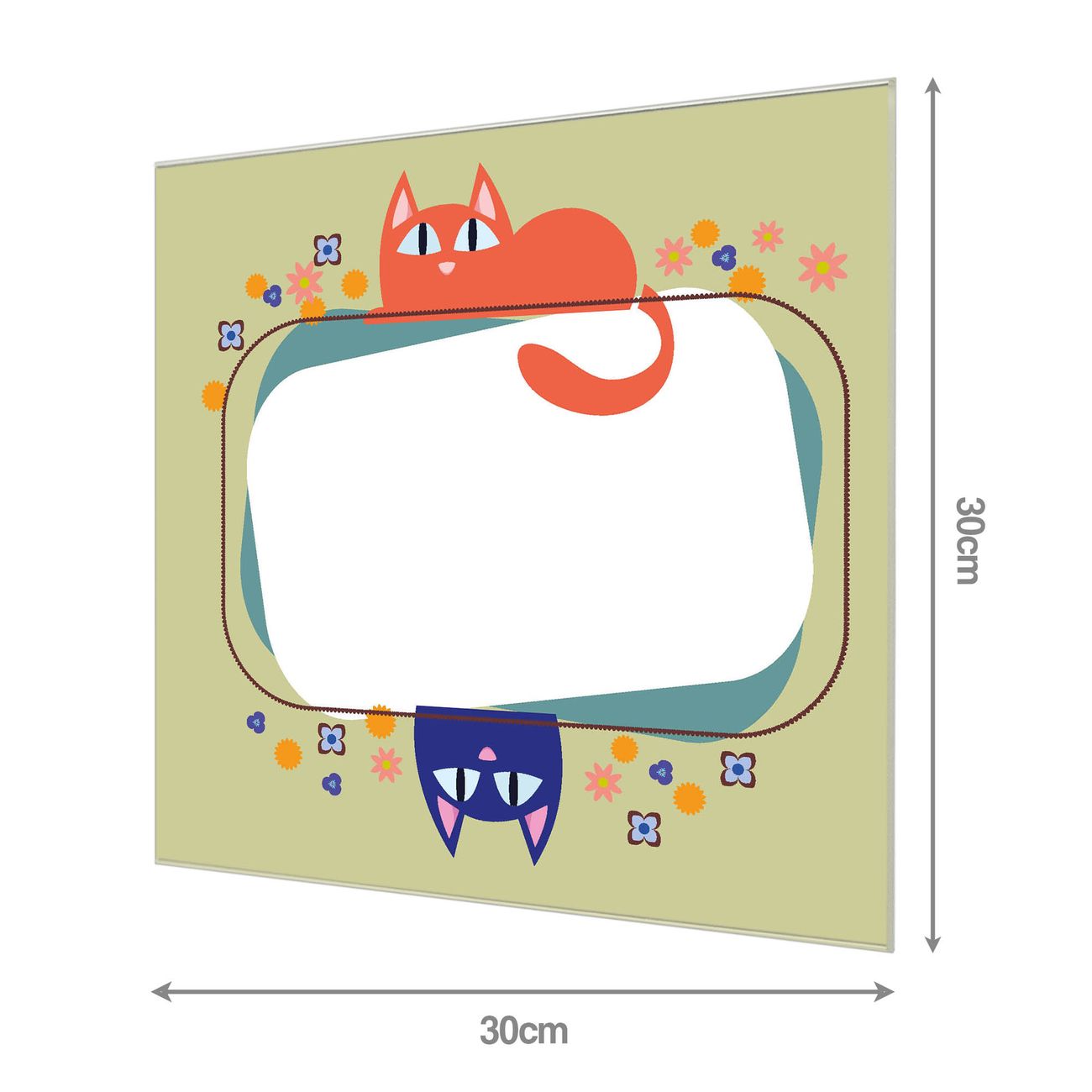 Material: 4mm Sicherheitsglas mit Metallrückwand Eigenschaften: beschreibbar, magnetisch, kratzfest Maße: 30x30x0,6cm, 1,89 kg schwer Motiv Nummer 10911 Karikatur Katzen Zubehör: inklusive 4 Neodym-Magnete