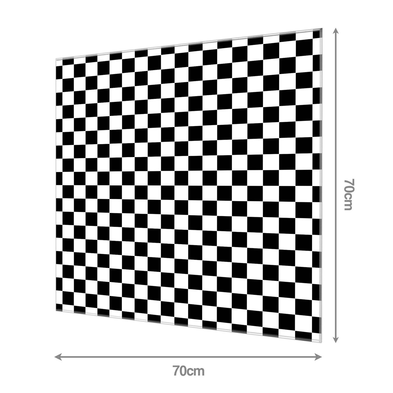 Material: 4mm Sicherheitsglas mit Metallrückwand Eigenschaften: beschreibbar, magnetisch, kratzfest Maße: 70x70x0,6cm, 10,50 kg schwer Motiv Nummer 10608 Karo Schwarz Zubehör: inklusive 4 Neodym-Magnete