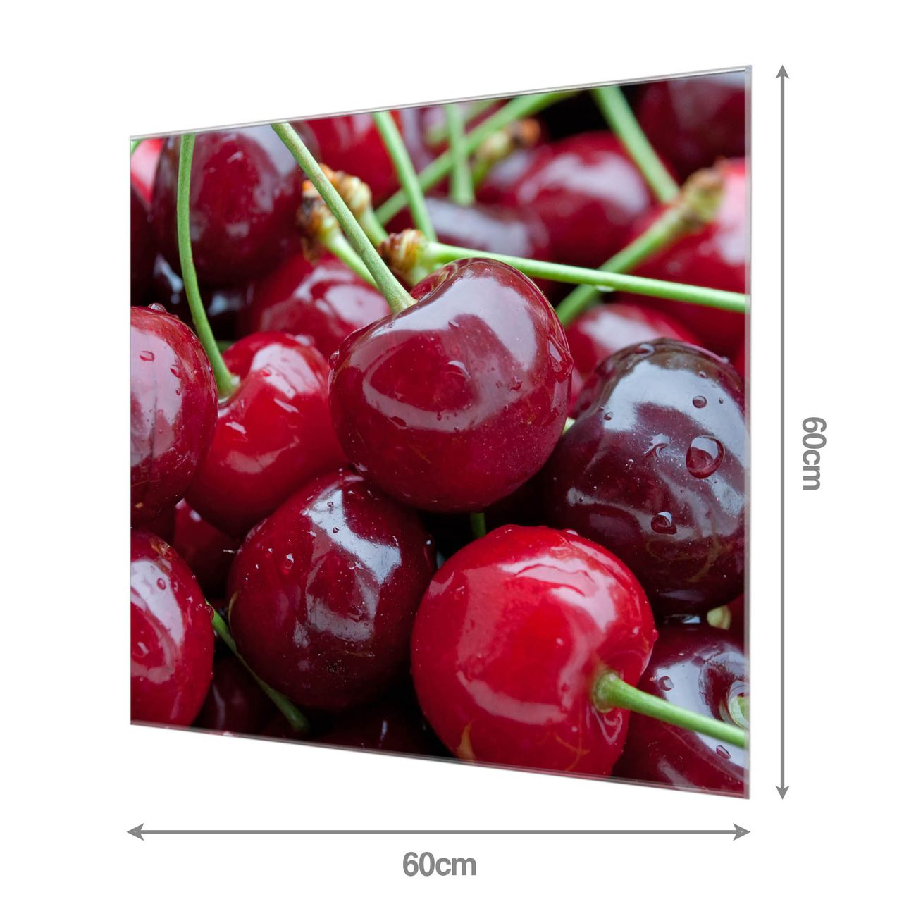 Material: 4mm Sicherheitsglas mit Metallrückwand Eigenschaften: beschreibbar, magnetisch, kratzfest Maße: 60x60x0,6cm, 7,56 kg schwer Motiv Nummer 10540 Kirschen Zubehör: inklusive 4 Neodym-Magnete