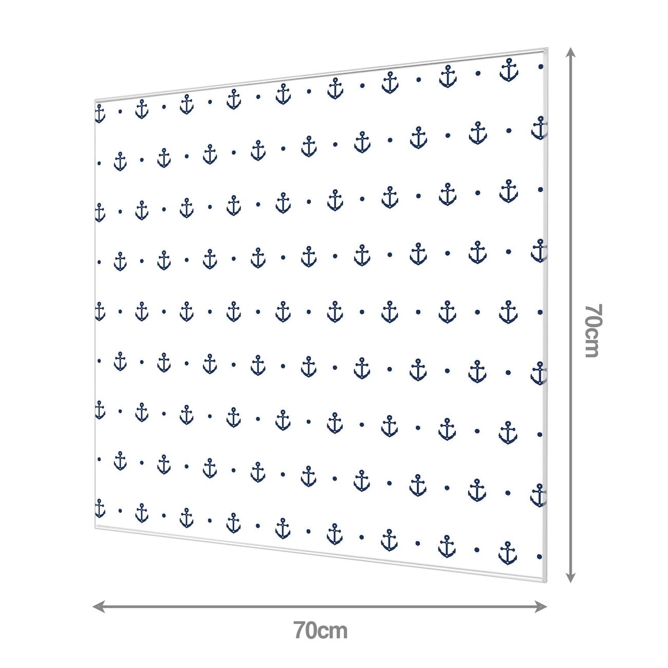 Material: 4mm Sicherheitsglas mit Metallrückwand Eigenschaften: beschreibbar, magnetisch, kratzfest Maße: 70x70x0,6cm, 10,50 kg schwer Motiv Nummer 12560 Kleine Anker Zubehör: inklusive 4 Neodym-Magnete