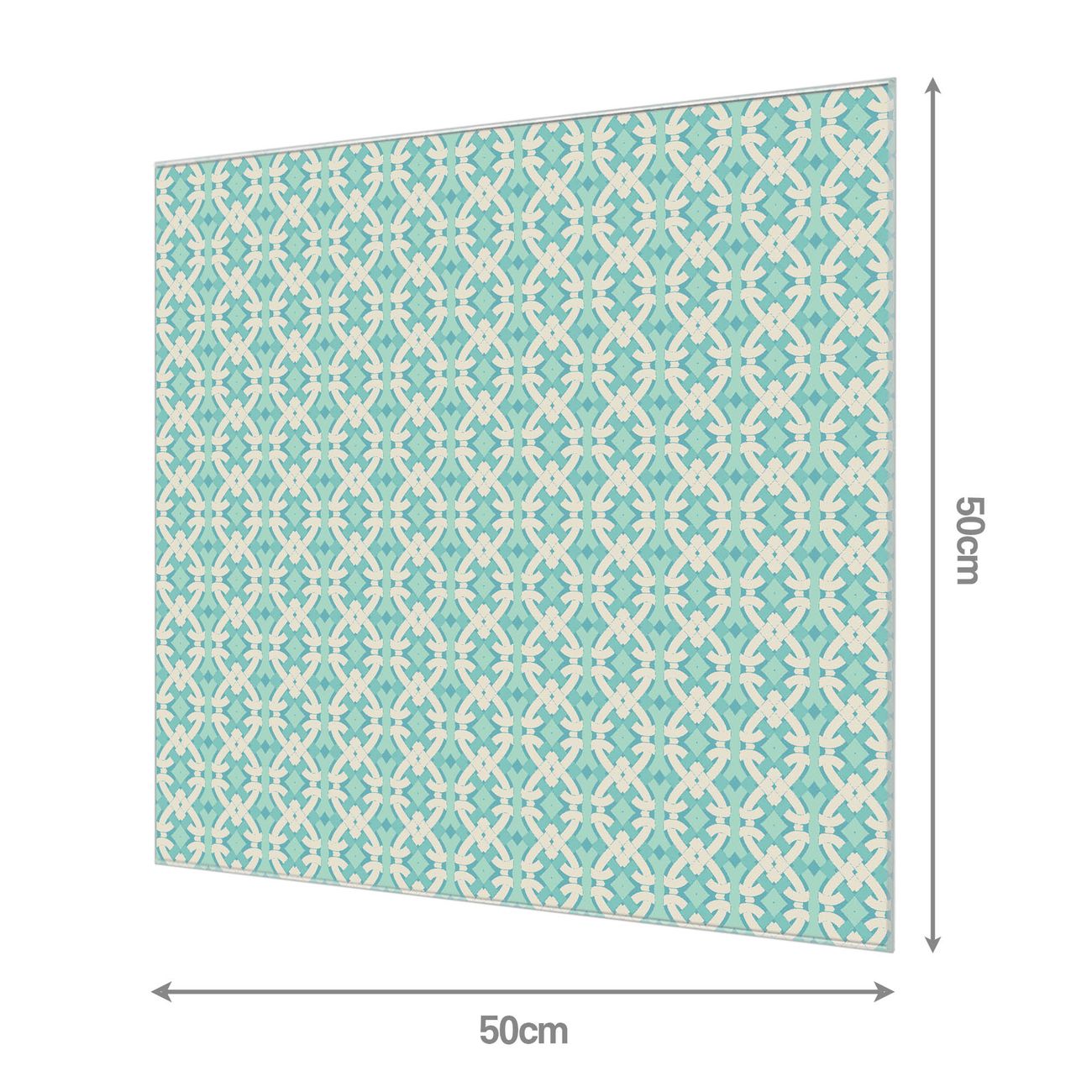 Material: 4mm Sicherheitsglas mit Metallrückwand Eigenschaften: beschreibbar, magnetisch, kratzfest Maße: 50x50x0,6cm, 5,25 kg schwer Motiv Nummer 11872 Knoten Türkis Zubehör: inklusive 4 Neodym-Magnete
