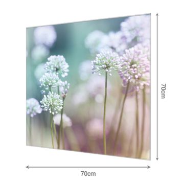 Material: 4mm Sicherheitsglas mit Metallrückwand Eigenschaften: beschreibbar, magnetisch, kratzfest Maße: 70x70x0,6cm, 10,50 kg schwer Motiv Nummer 11577 Lauchblüte Zubehör: inklusive 4 Neodym-Magnete