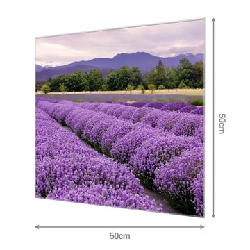 Material: 4mm Sicherheitsglas mit Metallrückwand Eigenschaften: beschreibbar, magnetisch, kratzfest Maße: 50x50x0,6cm, 5,25 kg schwer Motiv Nummer 10429 Lavendel 1 Zubehör: inklusive 4 Neodym-Magnete