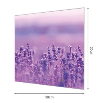 Material: 4mm Sicherheitsglas mit Metallrückwand Eigenschaften: beschreibbar, magnetisch, kratzfest Maße: 30x30x0,6cm, 1,89 kg schwer Motiv Nummer 11483 Lavendelmeer Zubehör: inklusive 4 Neodym-Magnete