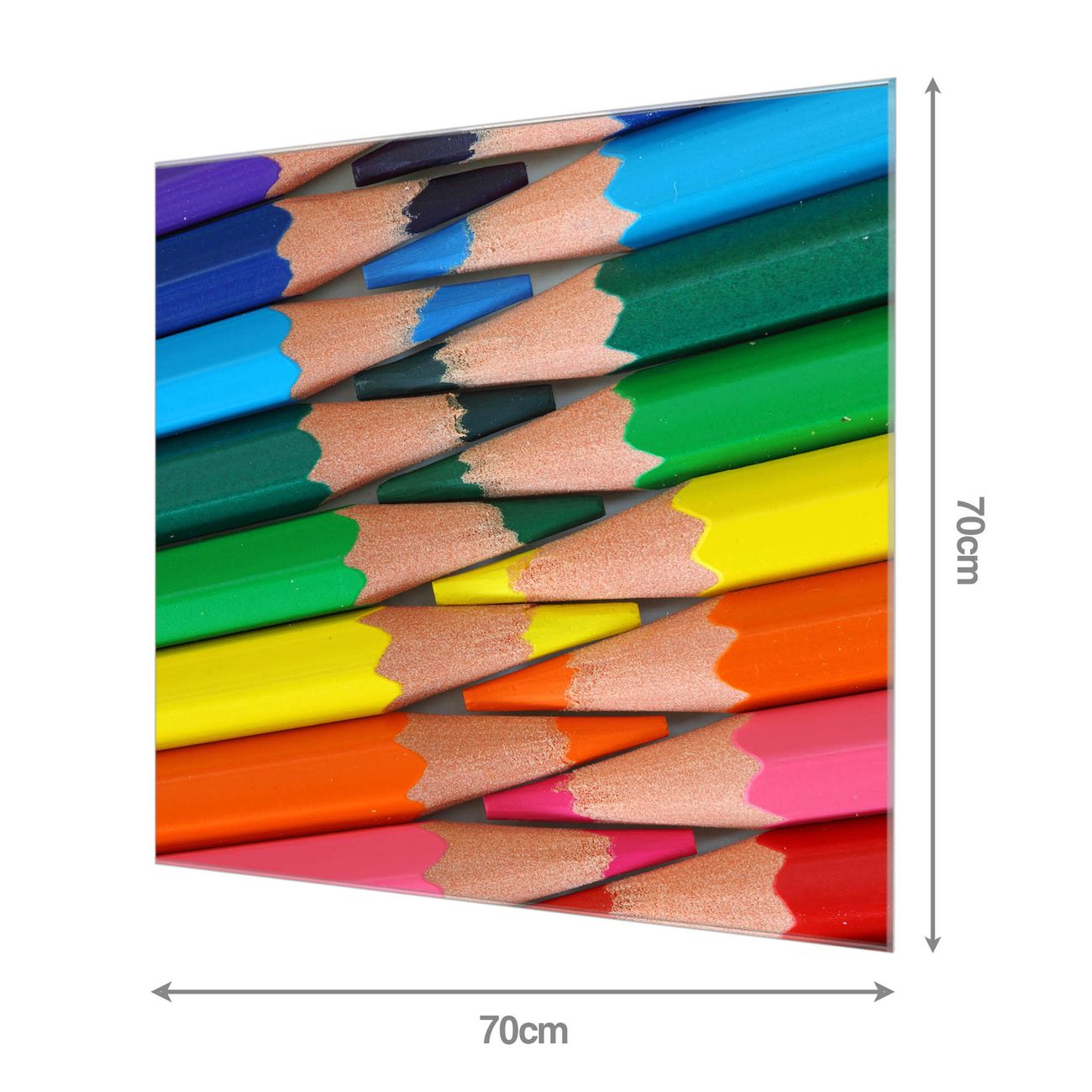 Material: 4mm Sicherheitsglas mit Metallrückwand Eigenschaften: beschreibbar, magnetisch, kratzfest Maße: 70x70x0,6cm, 10,50 kg schwer Motiv Nummer 10531 Malstifte Zubehör: inklusive 4 Neodym-Magnete