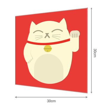 Material: 4mm Sicherheitsglas mit Metallrückwand Eigenschaften: beschreibbar, magnetisch, kratzfest Maße: 30x30x0,6cm, 1,89 kg schwer Motiv Nummer 11799 Manekineko Zubehör: inklusive 4 Neodym-Magnete