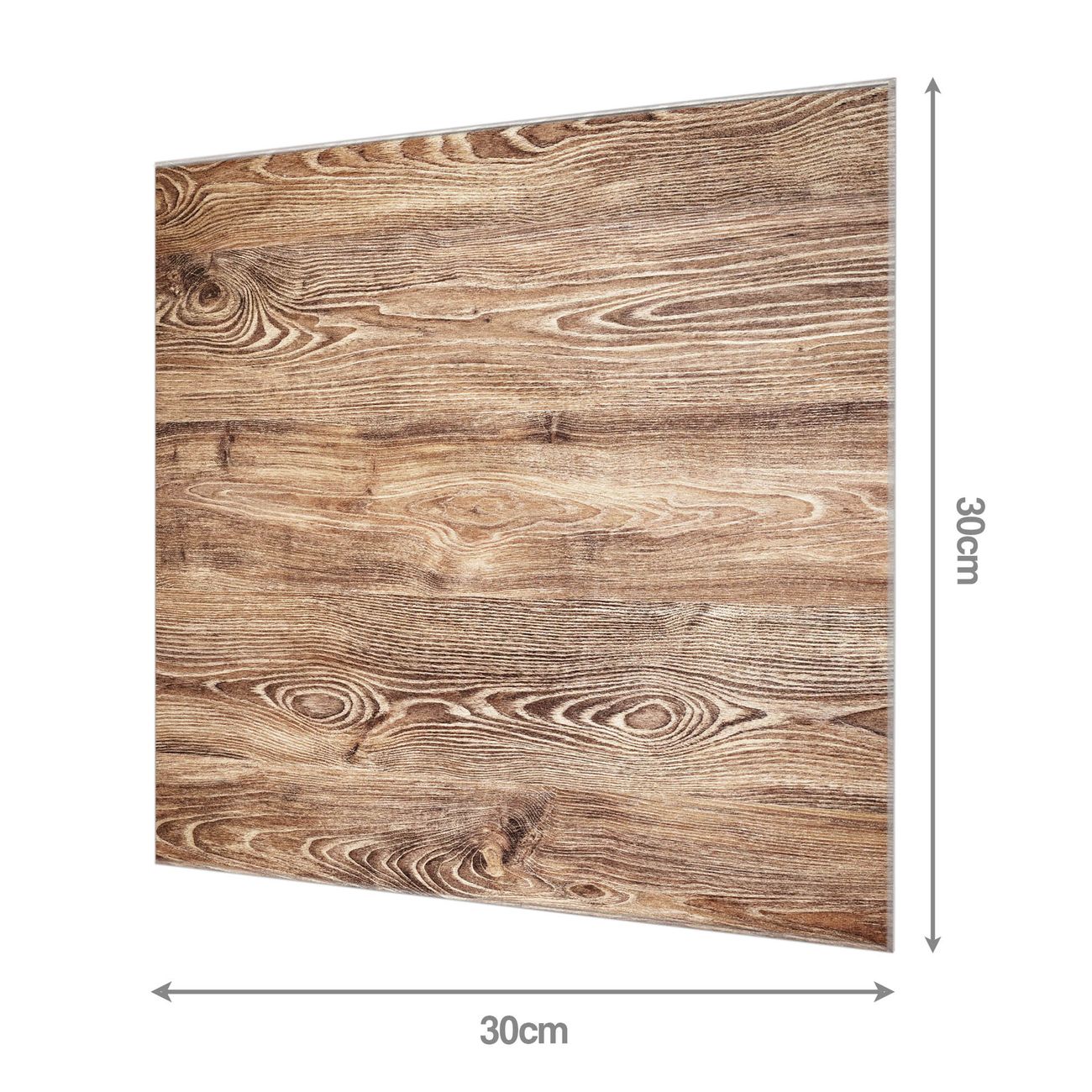 Material: 4mm Sicherheitsglas mit Metallrückwand Eigenschaften: beschreibbar, magnetisch, kratzfest Maße: 30x30x0,6cm, 1,89 kg schwer Motiv Nummer 12192 Maserung Zubehör: inklusive 4 Neodym-Magnete