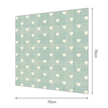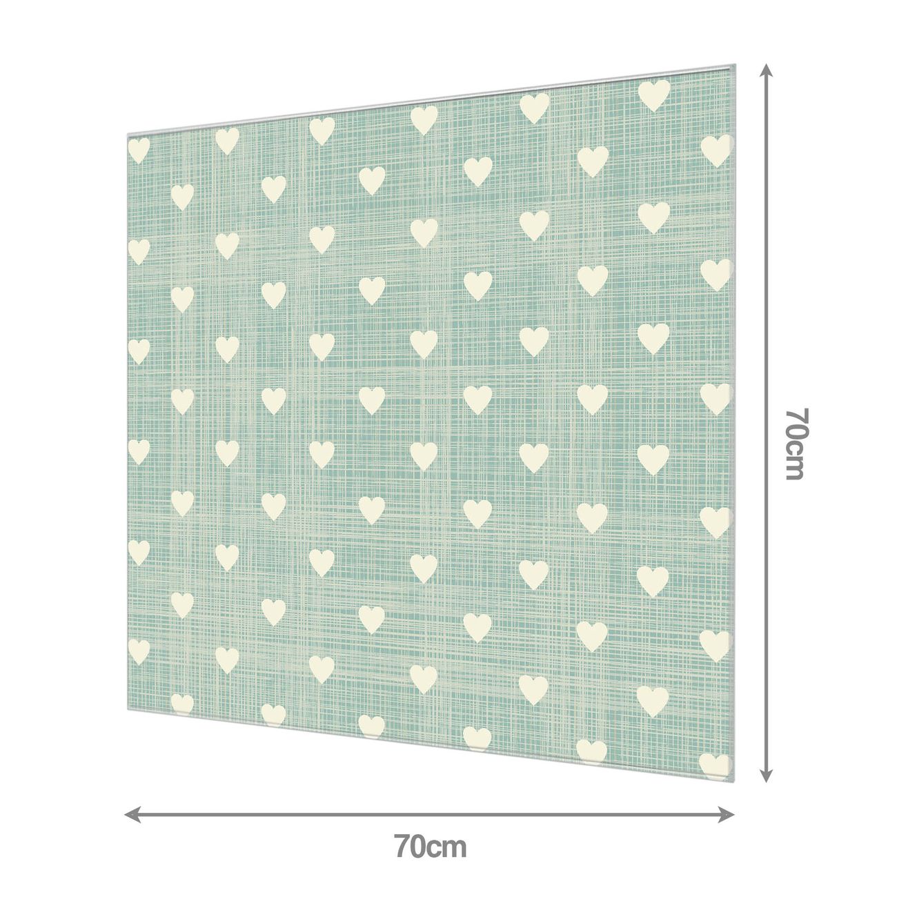 Material: 4mm Sicherheitsglas mit Metallrückwand Eigenschaften: beschreibbar, magnetisch, kratzfest Maße: 70x70x0,6cm, 10,50 kg schwer Motiv Nummer 10382 Muster Herzen Zubehör: inklusive 4 Neodym-Magnete