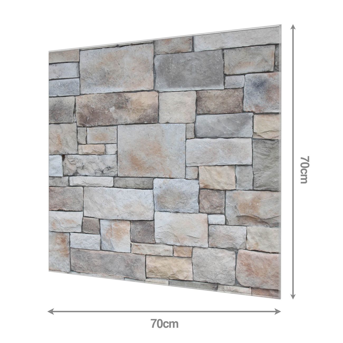 Material: 4mm Sicherheitsglas mit Metallrückwand Eigenschaften: beschreibbar, magnetisch, kratzfest Maße: 70x70x0,6cm, 10,50 kg schwer Motiv Nummer 12207 Natursteinmauer Zubehör: inklusive 4 Neodym-Magnete