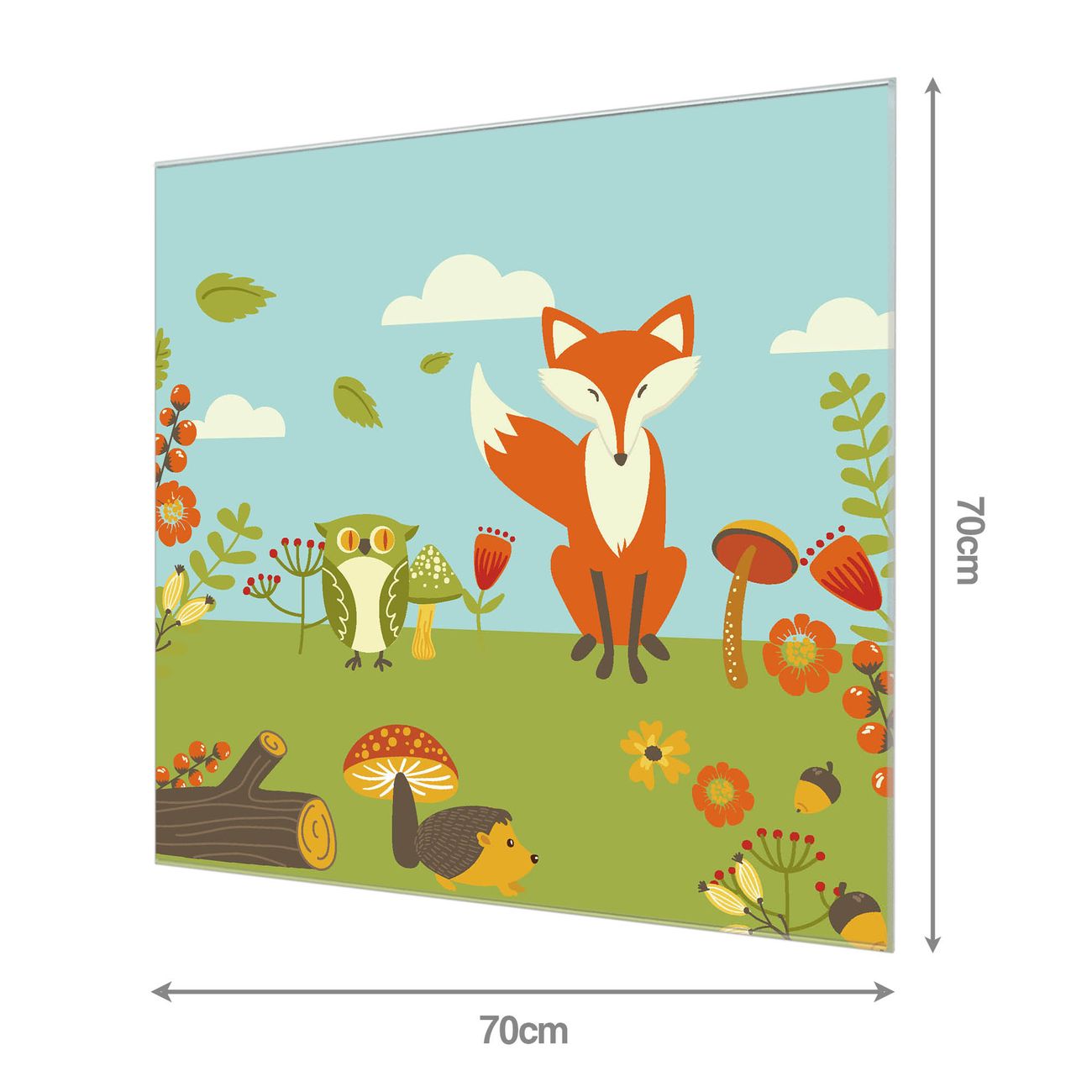 Material: 4mm Sicherheitsglas mit Metallrückwand Eigenschaften: beschreibbar, magnetisch, kratzfest Maße: 70x70x0,6cm, 10,50 kg schwer Motiv Nummer 11418 Neulich Im Wald Zubehör: inklusive 4 Neodym-Magnete