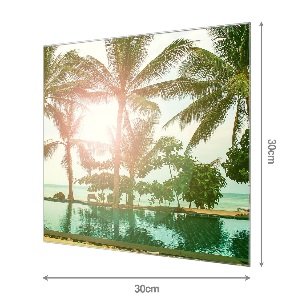 Material: 4mm Sicherheitsglas mit Metallrückwand Eigenschaften: beschreibbar, magnetisch, kratzfest Maße: 30x30x0,6cm, 1,89 kg schwer Motiv Nummer 12688 Palmen Zubehör: inklusive 4 Neodym-Magnete