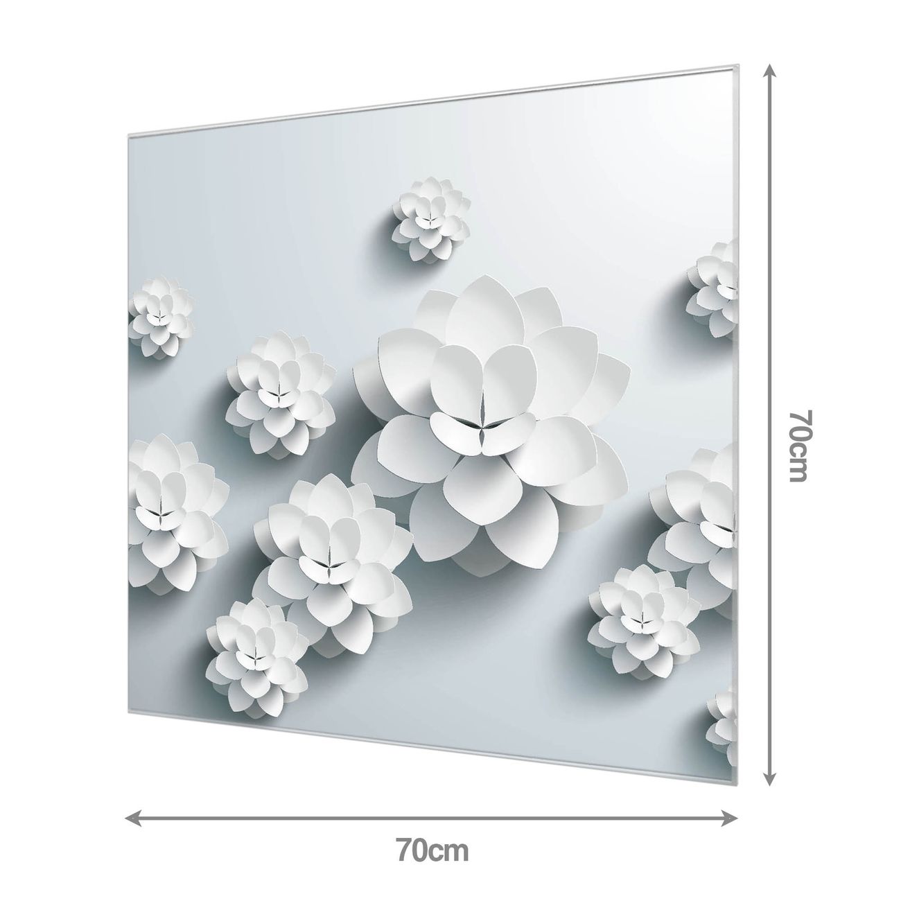 Material: 4mm Sicherheitsglas mit Metallrückwand Eigenschaften: beschreibbar, magnetisch, kratzfest Maße: 70x70x0,6cm, 10,50 kg schwer Motiv Nummer 11421 Papier Lotus Zubehör: inklusive 4 Neodym-Magnete