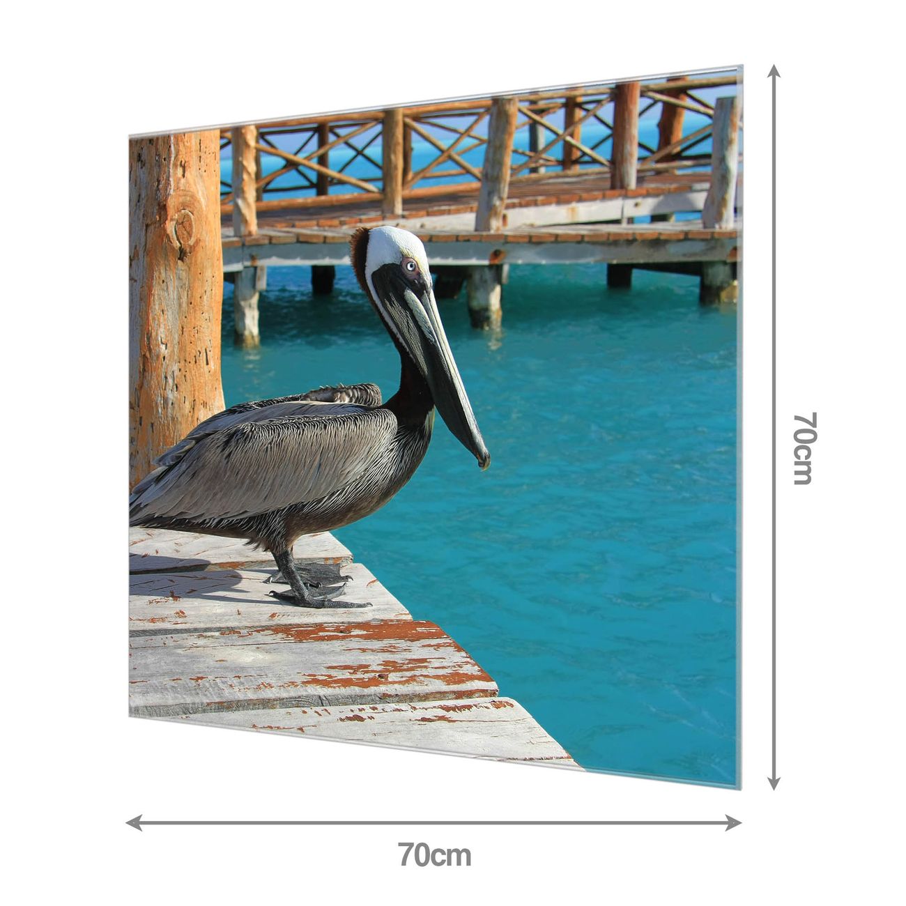 Material: 4mm Sicherheitsglas mit Metallrückwand Eigenschaften: beschreibbar, magnetisch, kratzfest Maße: 70x70x0,6cm, 10,50 kg schwer Motiv Nummer 12251 Pelikan Zubehör: inklusive 4 Neodym-Magnete