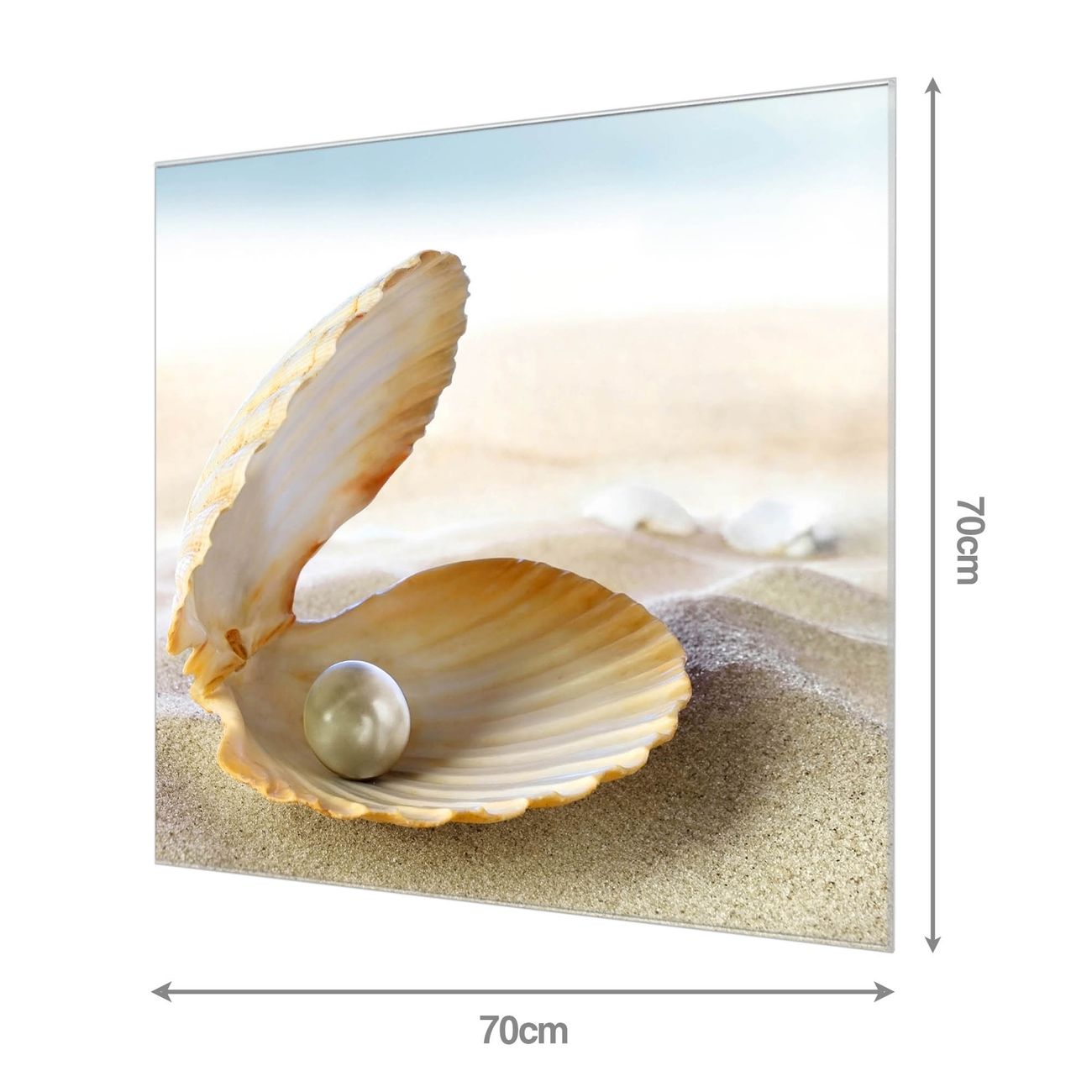 Material: 4mm Sicherheitsglas mit Metallrückwand Eigenschaften: beschreibbar, magnetisch, kratzfest Maße: 70x70x0,6cm, 10,50 kg schwer Motiv Nummer 10265 Perlenmuschel Zubehör: inklusive 4 Neodym-Magnete