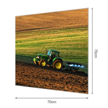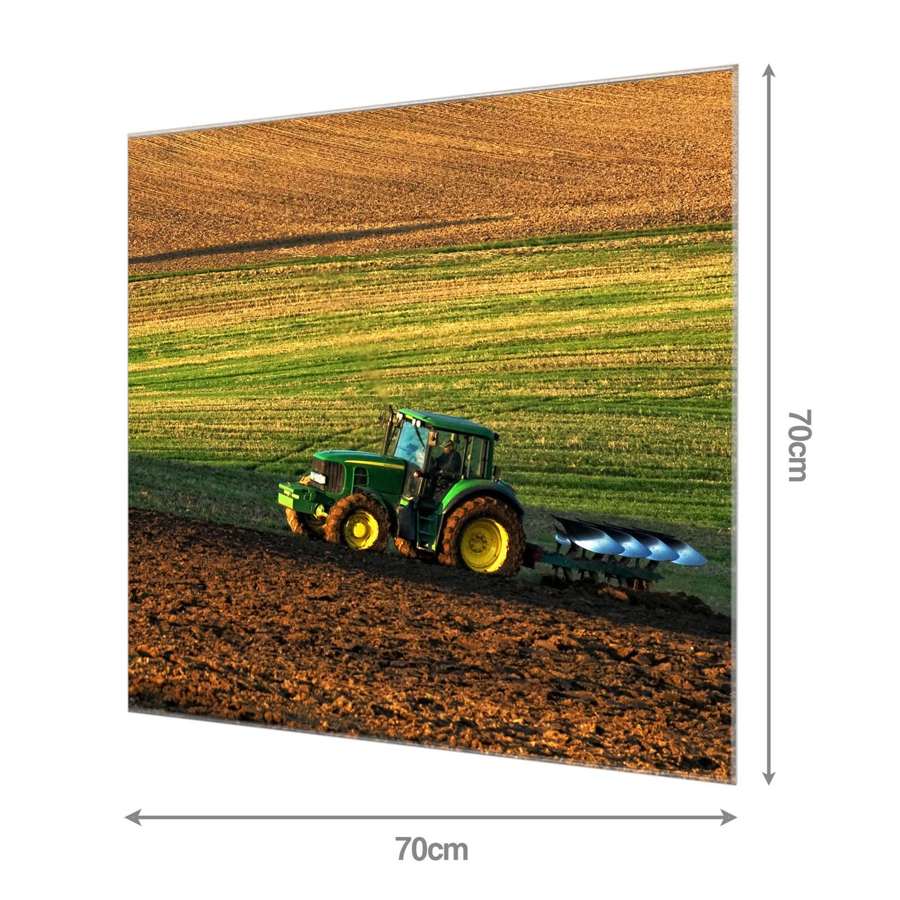Material: 4mm Sicherheitsglas mit Metallrückwand Eigenschaften: beschreibbar, magnetisch, kratzfest Maße: 70x70x0,6cm, 10,50 kg schwer Motiv Nummer 11207 Pflügen Zubehör: inklusive 4 Neodym-Magnete