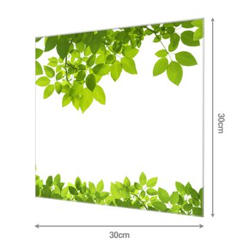 Material: 4mm Sicherheitsglas mit Metallrückwand Eigenschaften: beschreibbar, magnetisch, kratzfest Maße: 30x30x0,6cm, 1,89 kg schwer Motiv Nummer 10343 Rahmen Blätter Zubehör: inklusive 4 Neodym-Magnete
