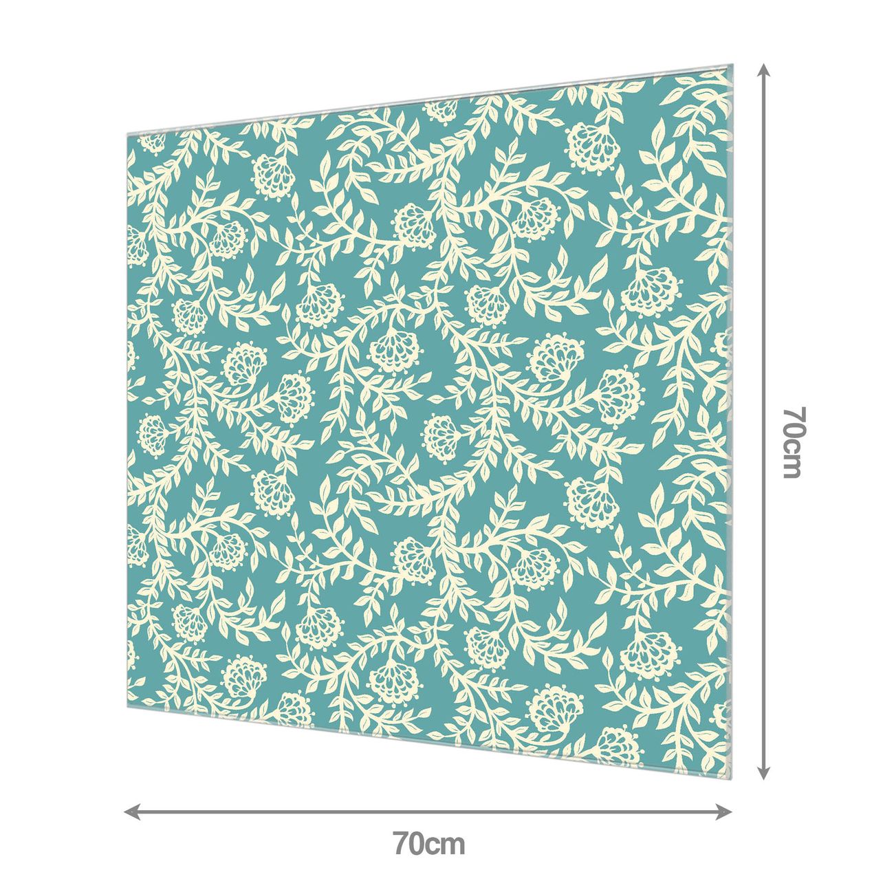 Material: 4mm Sicherheitsglas mit Metallrückwand Eigenschaften: beschreibbar, magnetisch, kratzfest Maße: 70x70x0,6cm, 10,50 kg schwer Motiv Nummer 12154 Rankenornament Zubehör: inklusive 4 Neodym-Magnete