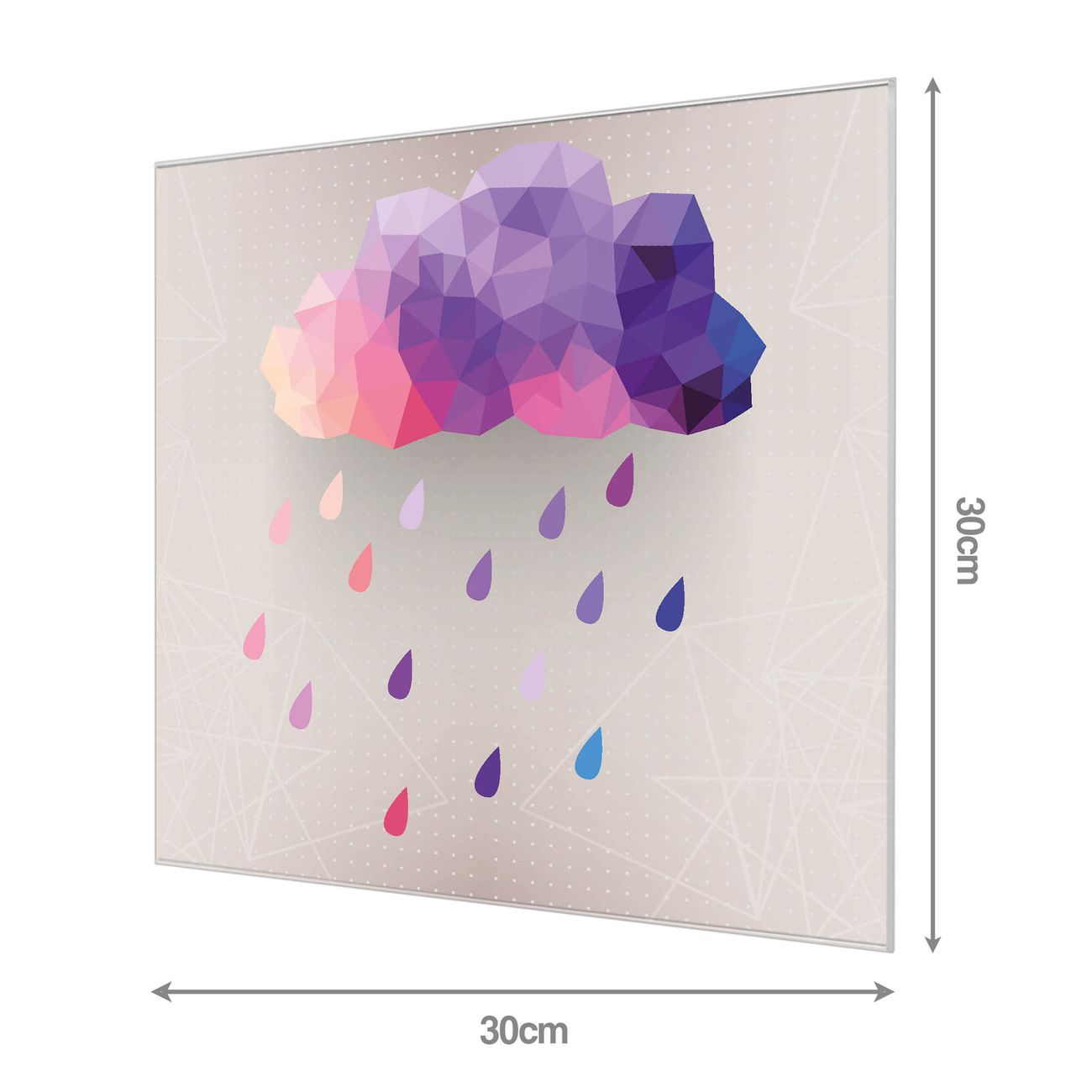 Material: 4mm Sicherheitsglas mit Metallrückwand Eigenschaften: beschreibbar, magnetisch, kratzfest Maße: 30x30x0,6cm, 1,89 kg schwer Motiv Nummer 12586 Regenwolke Zubehör: inklusive 4 Neodym-Magnete