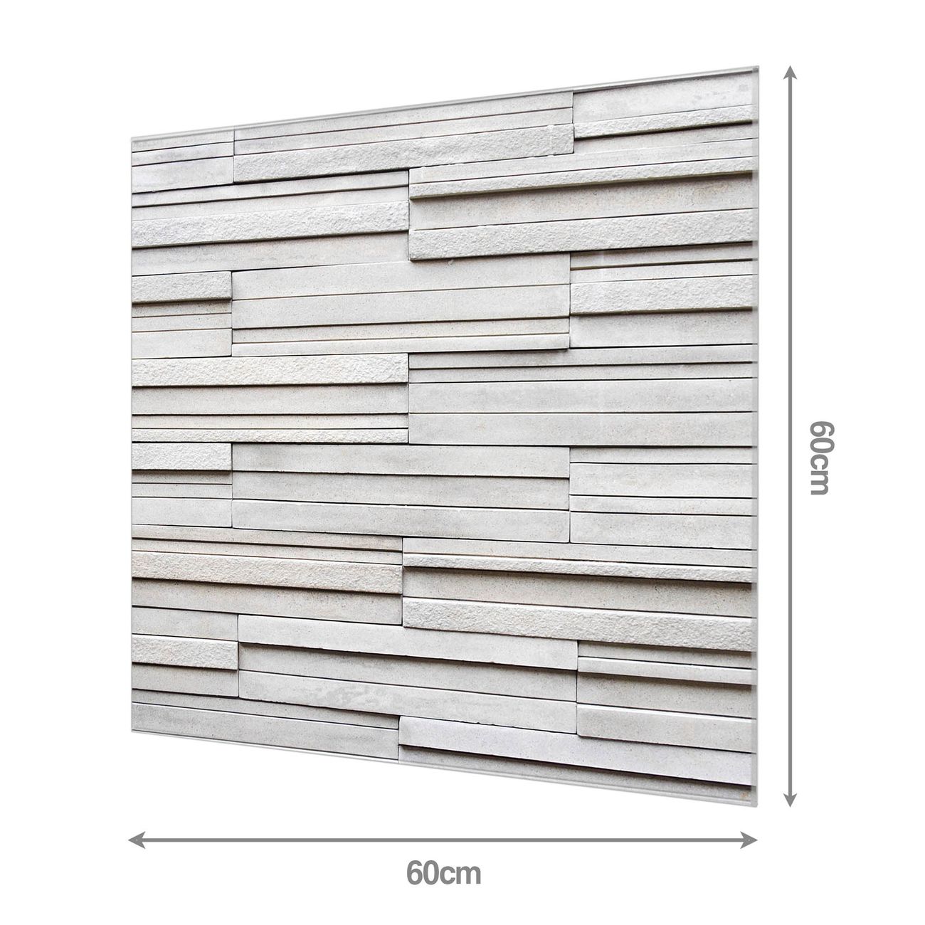 Material: 4mm Sicherheitsglas mit Metallrückwand Eigenschaften: beschreibbar, magnetisch, kratzfest Maße: 60x60x0,6cm, 7,56 kg schwer Motiv Nummer 11516 Relief Zubehör: inklusive 4 Neodym-Magnete