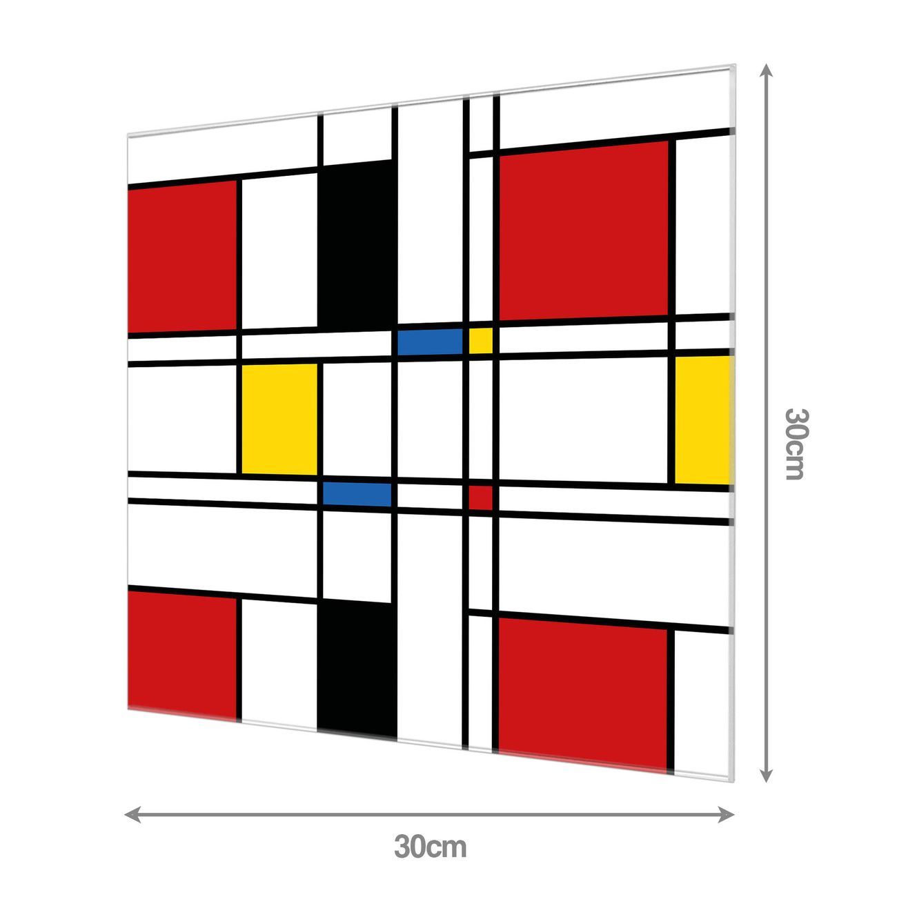 Material: 4mm Sicherheitsglas mit Metallrückwand Eigenschaften: beschreibbar, magnetisch, kratzfest Maße: 30x30x0,6cm, 1,89 kg schwer Motiv Nummer 12136 Rot Gelb Blau Zubehör: inklusive 4 Neodym-Magnete
