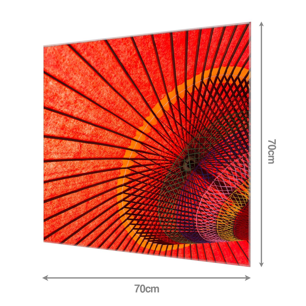 Material: 4mm Sicherheitsglas mit Metallrückwand Eigenschaften: beschreibbar, magnetisch, kratzfest Maße: 70x70x0,6cm, 10,50 kg schwer Motiv Nummer 12677 Roter Schirm Zubehör: inklusive 4 Neodym-Magnete