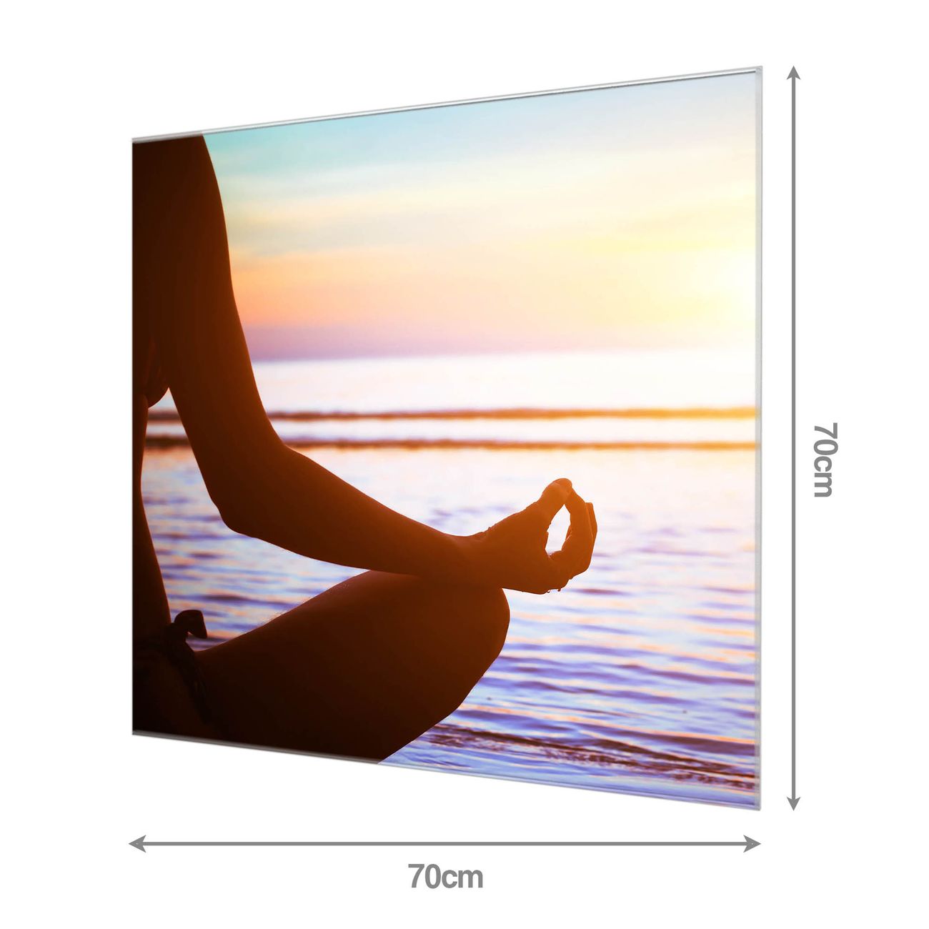 Material: 4mm Sicherheitsglas mit Metallrückwand Eigenschaften: beschreibbar, magnetisch, kratzfest Maße: 70x70x0,6cm, 10,50 kg schwer Motiv Nummer 12124 Ruhe Zubehör: inklusive 4 Neodym-Magnete