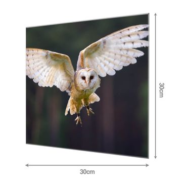 Material: 4mm Sicherheitsglas mit Metallrückwand Eigenschaften: beschreibbar, magnetisch, kratzfest Maße: 30x30x0,6cm, 1,89 kg schwer Motiv Nummer 10503 Schleiereule Zubehör: inklusive 4 Neodym-Magnete