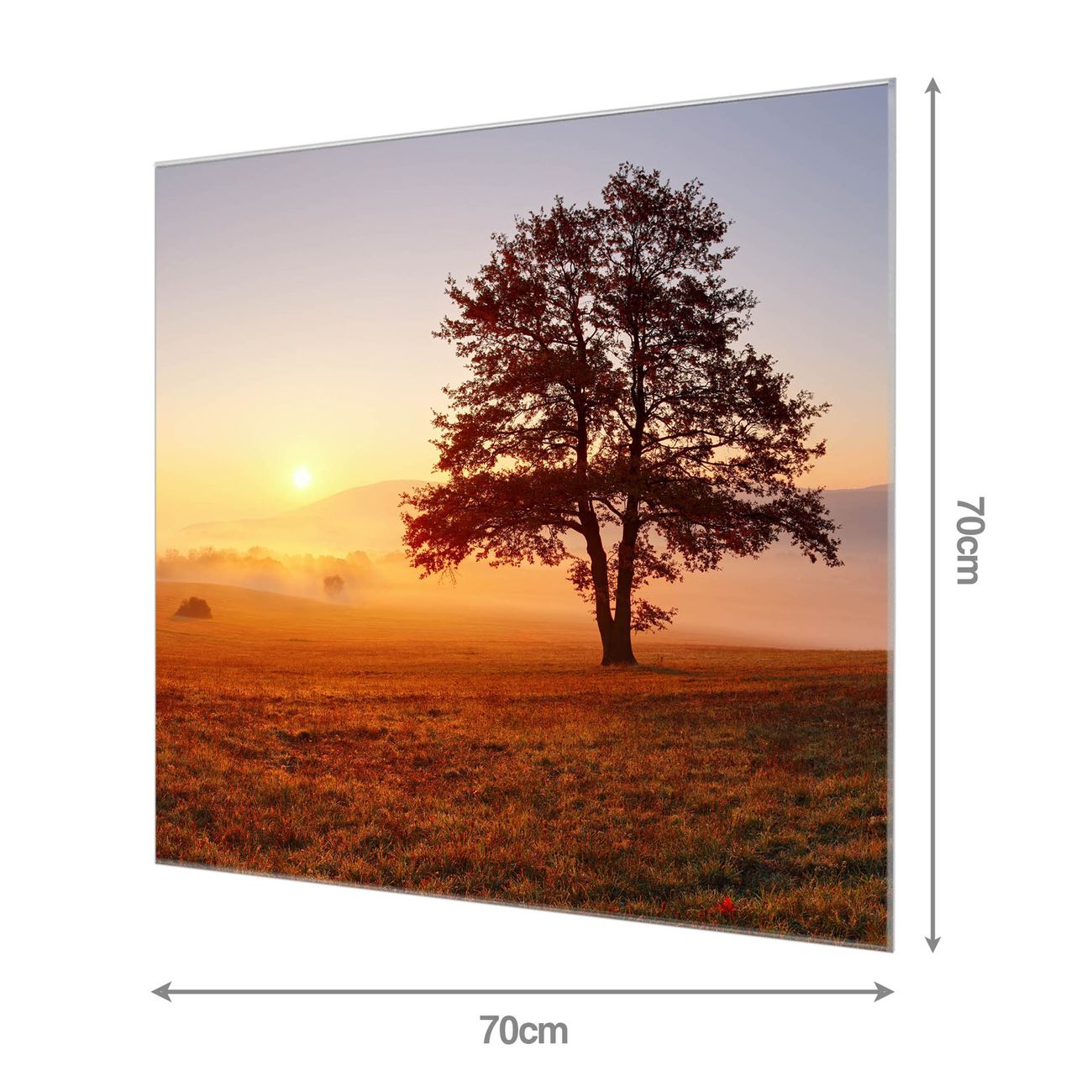 Material: 4mm Sicherheitsglas mit Metallrückwand Eigenschaften: beschreibbar, magnetisch, kratzfest Maße: 70x70x0,6cm, 10,50 kg schwer Motiv Nummer 12297 Sonnenaufgang Zubehör: inklusive 4 Neodym-Magnete