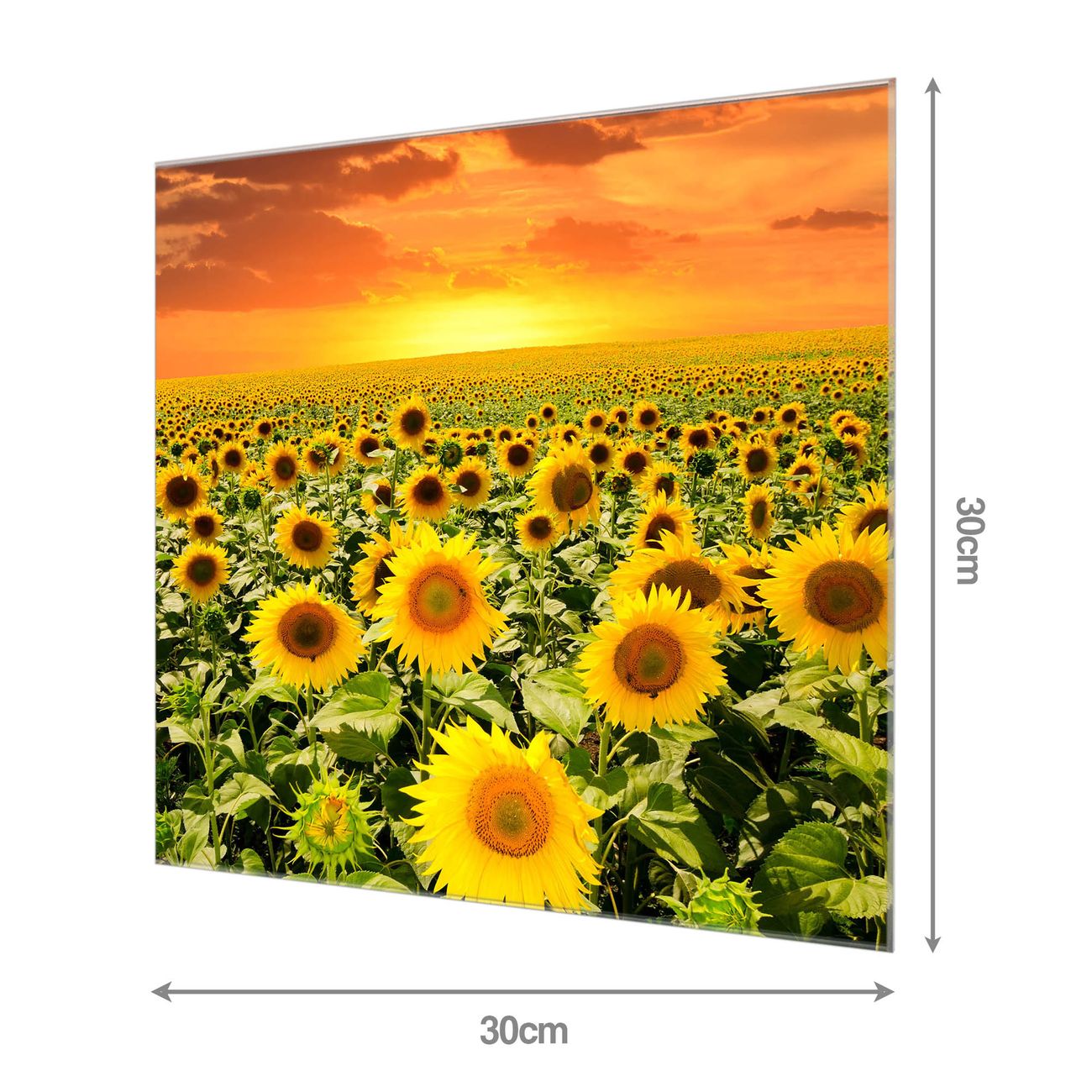 Material: 4mm Sicherheitsglas mit Metallrückwand Eigenschaften: beschreibbar, magnetisch, kratzfest Maße: 30x30x0,6cm, 1,89 kg schwer Motiv Nummer 12283 Sonnenblumenmeer Zubehör: inklusive 4 Neodym-Magnete