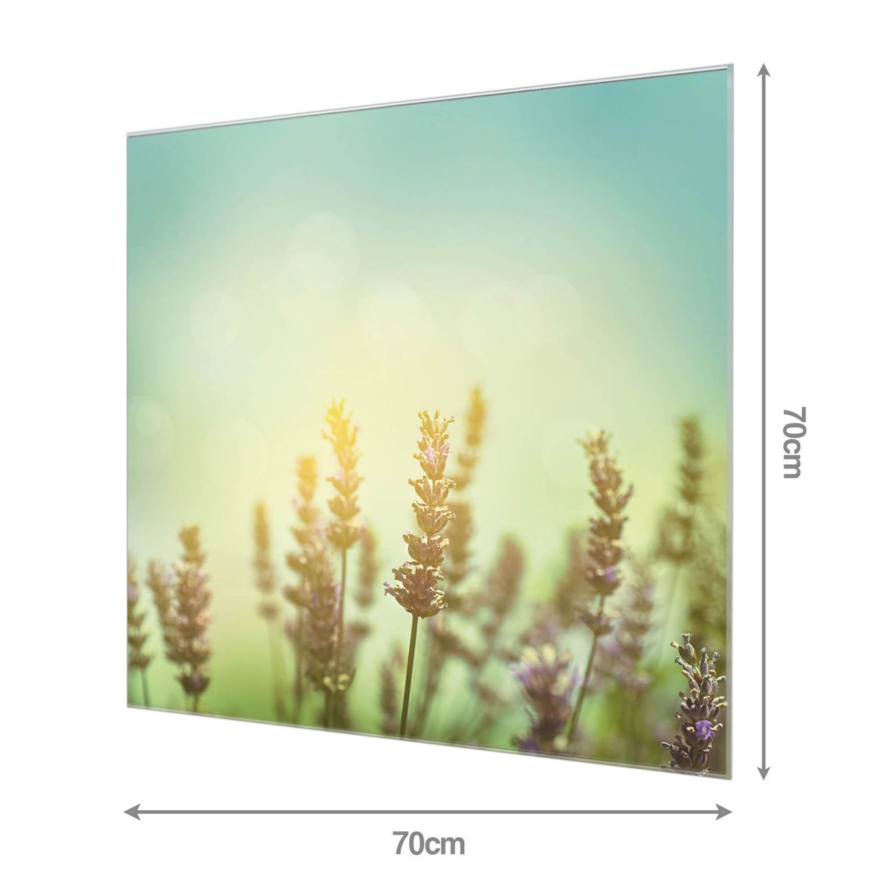 Material: 4mm Sicherheitsglas mit Metallrückwand Eigenschaften: beschreibbar, magnetisch, kratzfest Maße: 70x70x0,6cm, 10,50 kg schwer Motiv Nummer 11622 Sonnenlavendel Zubehör: inklusive 4 Neodym-Magnete