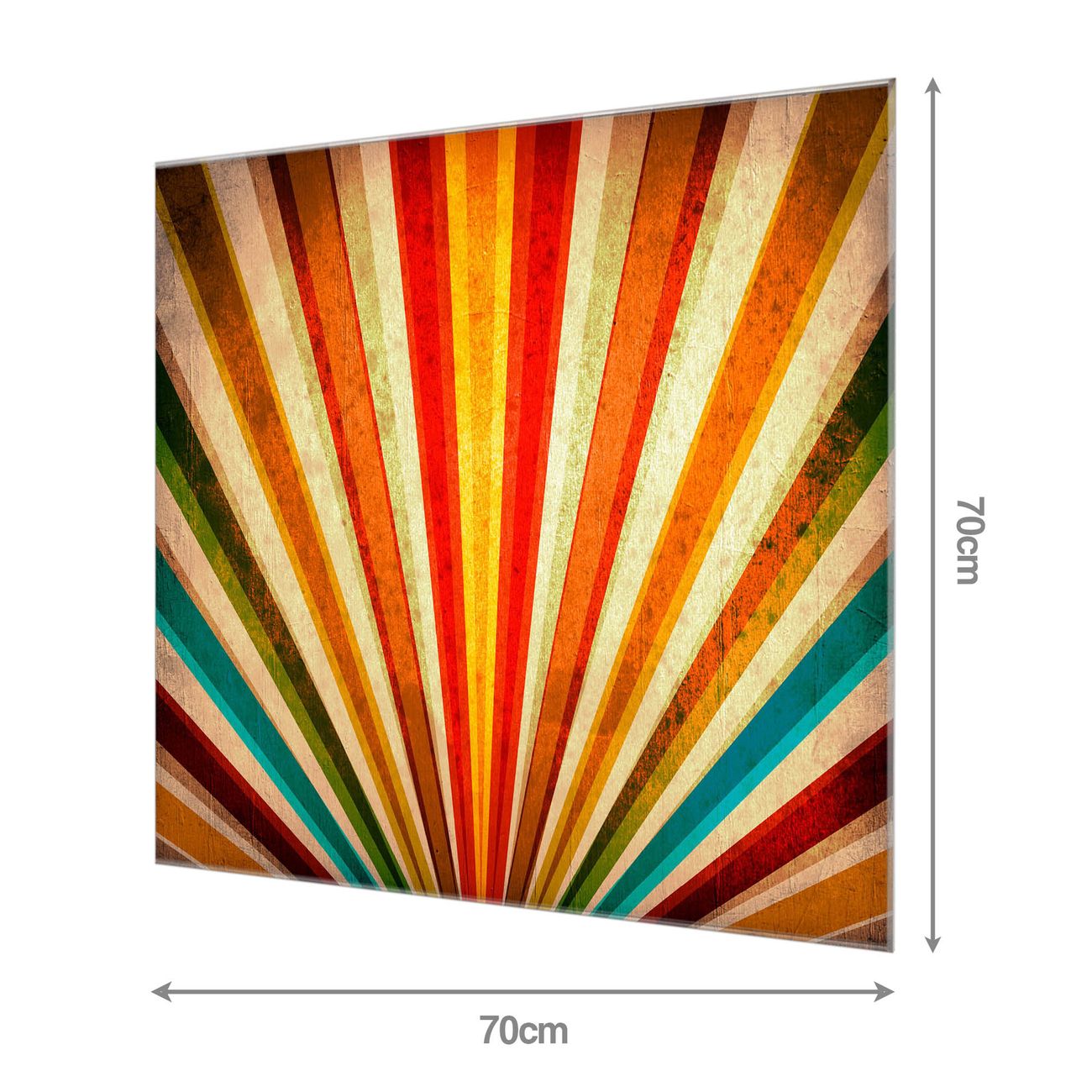 Material: 4mm Sicherheitsglas mit Metallrückwand Eigenschaften: beschreibbar, magnetisch, kratzfest Maße: 70x70x0,6cm, 10,50 kg schwer Motiv Nummer 11667 Sonnenuntergang Abstrakt Zubehör: inklusive 4 Neodym-Magnete