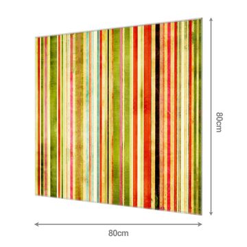 Material: 4mm Sicherheitsglas mit Metallrückwand Eigenschaften: beschreibbar, magnetisch, kratzfest Maße: 80x80x0,6cm, 12,00 kg schwer Motiv Nummer 10050 Streifen Zubehör: inklusive 4 Neodym-Magnete