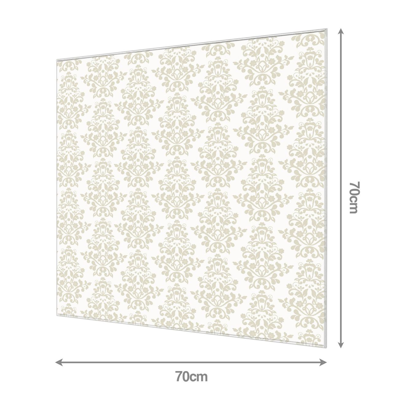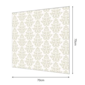 Material: 4mm Sicherheitsglas mit Metallrückwand Eigenschaften: beschreibbar, magnetisch, kratzfest Maße: 70x70x0,6cm, 10,50 kg schwer Motiv Nummer 10935 Tapete Weiß Zubehör: inklusive 4 Neodym-Magnete