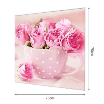 Material: 4mm Sicherheitsglas mit Metallrückwand Eigenschaften: beschreibbar, magnetisch, kratzfest Maße: 70x70x0,6cm, 10,50 kg schwer Motiv Nummer 12338 Tasse Voll Rosen Zubehör: inklusive 4 Neodym-Magnete