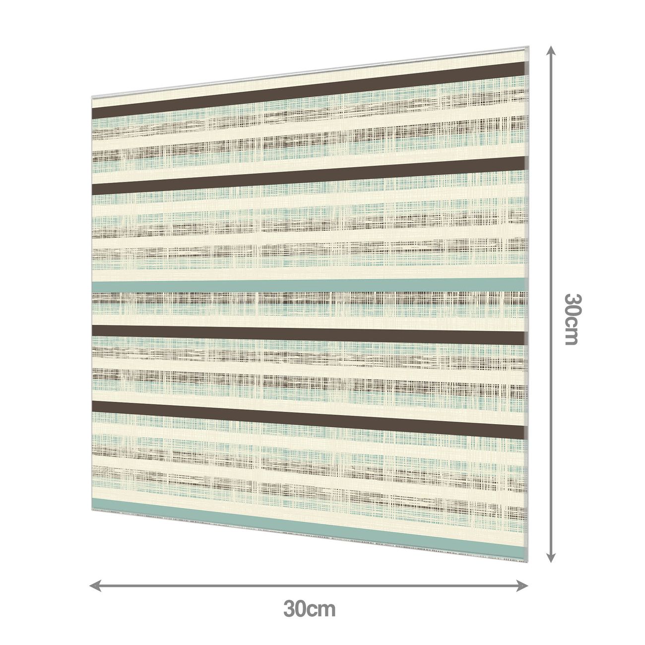 Material: 4mm Sicherheitsglas mit Metallrückwand Eigenschaften: beschreibbar, magnetisch, kratzfest Maße: 30x30x0,6cm, 1,89 kg schwer Motiv Nummer 11315 Textile Streifen Zubehör: inklusive 4 Neodym-Magnete