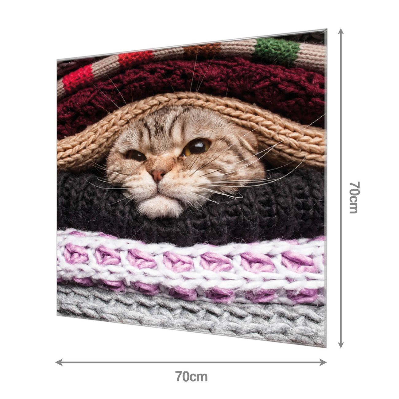 Material: 4mm Sicherheitsglas mit Metallrückwand Eigenschaften: beschreibbar, magnetisch, kratzfest Maße: 70x70x0,6cm, 10,50 kg schwer Motiv Nummer 11702 Theo Zubehör: inklusive 4 Neodym-Magnete