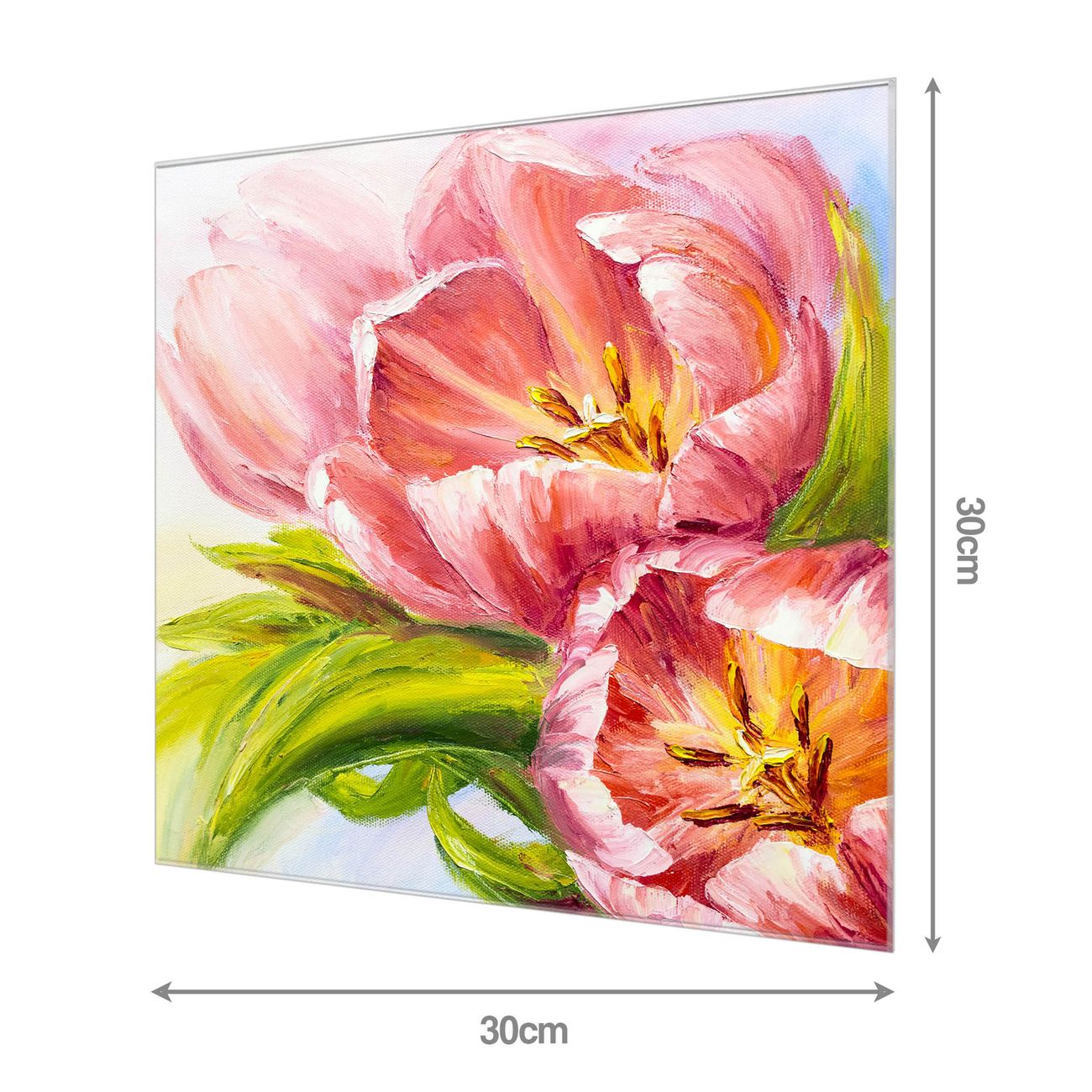 Material: 4mm Sicherheitsglas mit Metallrückwand Eigenschaften: beschreibbar, magnetisch, kratzfest Maße: 30x30x0,6cm, 1,89 kg schwer Motiv Nummer 12342 Tulpen Detail Zubehör: inklusive 4 Neodym-Magnete