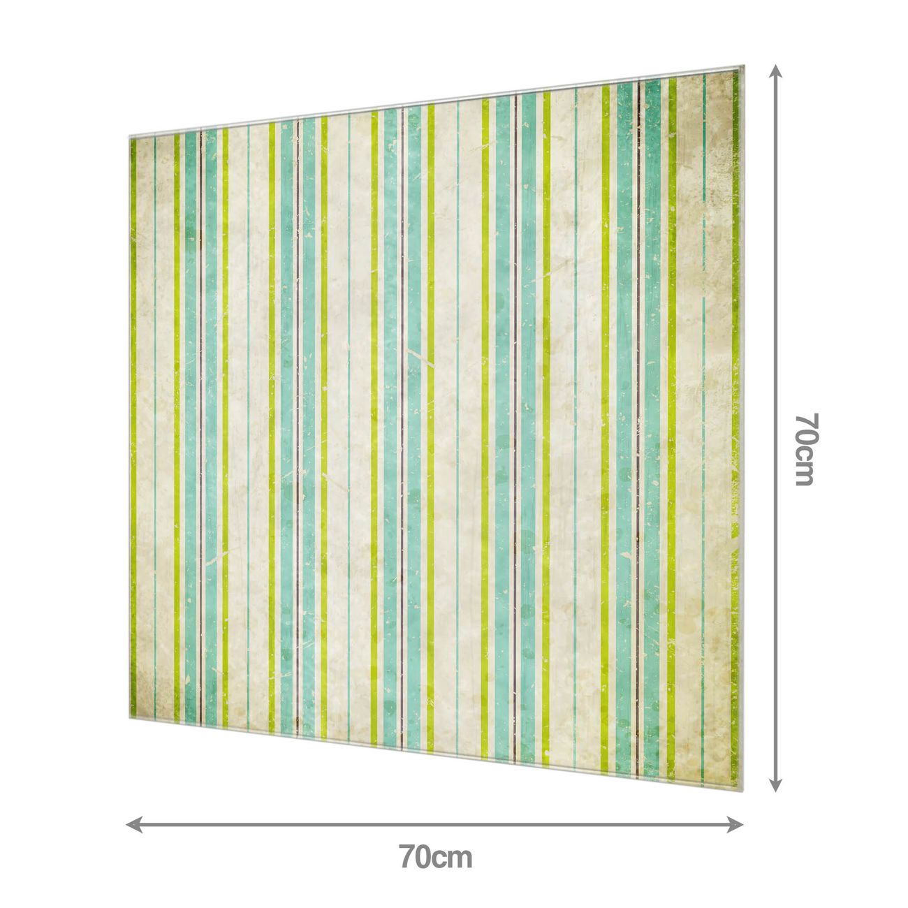 Material: 4mm Sicherheitsglas mit Metallrückwand Eigenschaften: beschreibbar, magnetisch, kratzfest Maße: 70x70x0,6cm, 10,50 kg schwer Motiv Nummer 11268 Vintage Streifenmuster Zubehör: inklusive 4 Neodym-Magnete