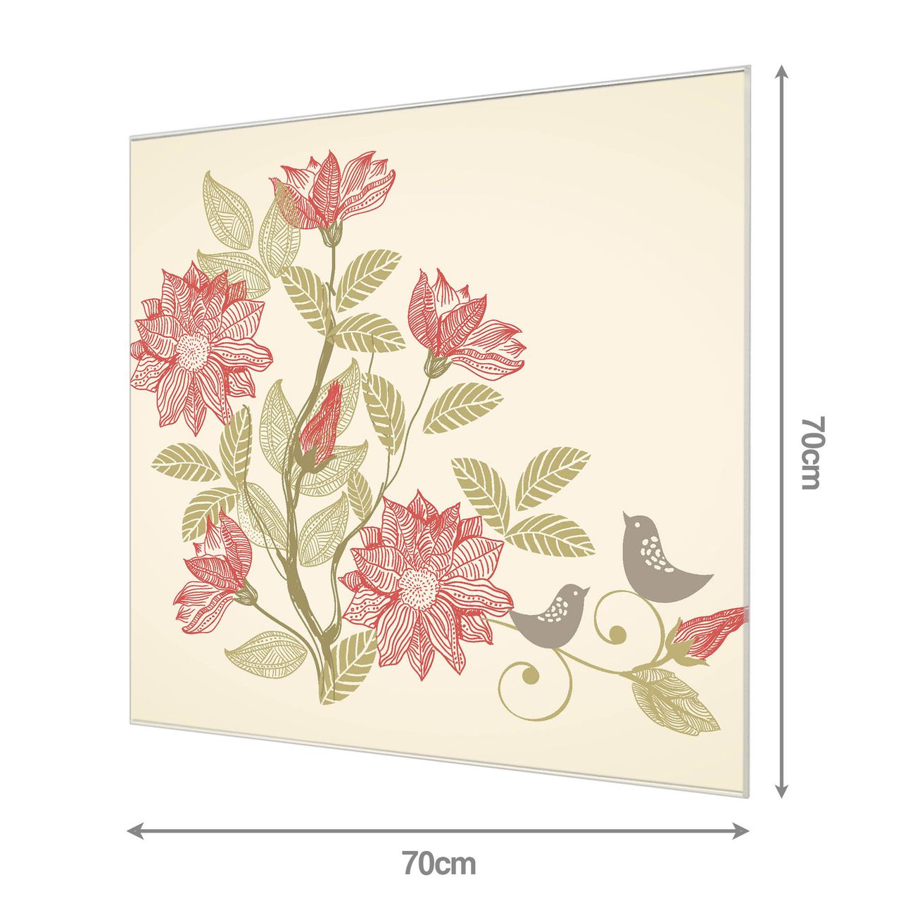 Material: 4mm Sicherheitsglas mit Metallrückwand Eigenschaften: beschreibbar, magnetisch, kratzfest Maße: 70x70x0,6cm, 10,50 kg schwer Motiv Nummer 10933 Vogelpaar Zubehör: inklusive 4 Neodym-Magnete