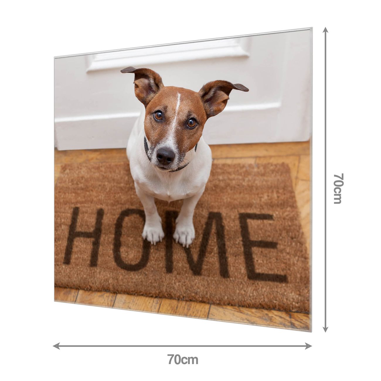 Material: 4mm Sicherheitsglas mit Metallrückwand Eigenschaften: beschreibbar, magnetisch, kratzfest Maße: 70x70x0,6cm, 10,50 kg schwer Motiv Nummer 10476 Wachhund Jack Russel Zubehör: inklusive 4 Neodym-Magnete