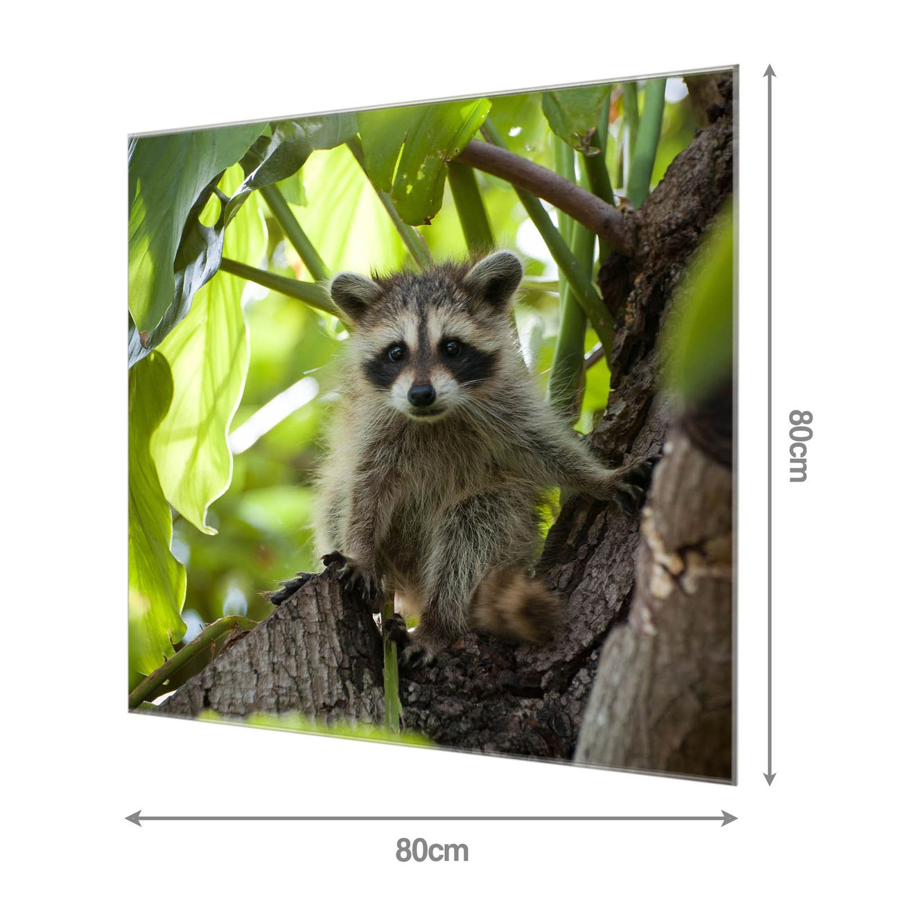 Material  4mm Sicherheitsglas mit Metallrückwand Eigenschaften  beschreibbar, magnetisch, kratzfest Maße  80x80x0,6cm, 12,00 kg schwer Motiv  Nummer 10424 Waschbär Zubehör  inklusive 4 Neodym-Magnete