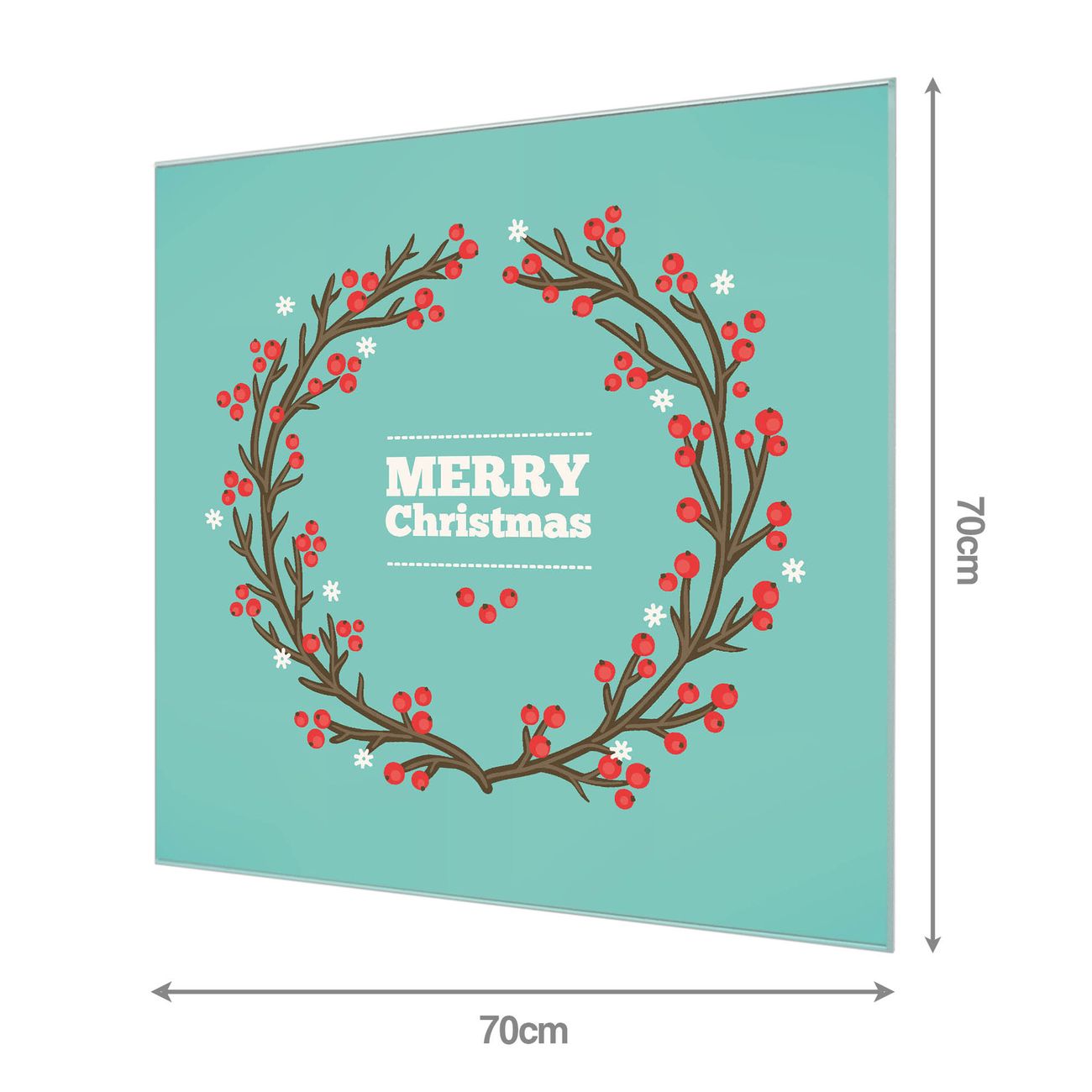 Material: 4mm Sicherheitsglas mit Metallrückwand Eigenschaften: beschreibbar, magnetisch, kratzfest Maße: 70x70x0,6cm, 10,50 kg schwer Motiv Nummer 12540 Weihnachtsranke Zubehör: inklusive 4 Neodym-Magnete