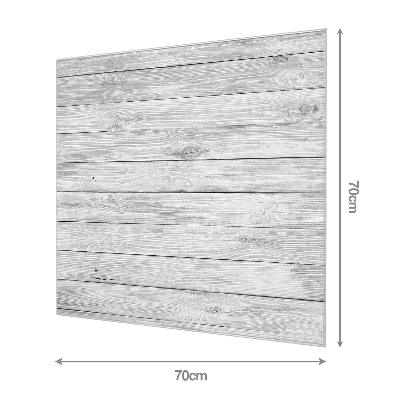 Material: 4mm Sicherheitsglas mit Metallrückwand Eigenschaften: beschreibbar, magnetisch, kratzfest Maße: 70x70x0,6cm, 10,50 kg schwer Motiv Nummer 11291 Weiß Gebeizt Zubehör: inklusive 4 Neodym-Magnete