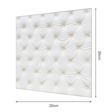Material: 4mm Sicherheitsglas mit Metallrückwand Eigenschaften: beschreibbar, magnetisch, kratzfest Maße: 30x30x0,6cm, 1,89 kg schwer Motiv Nummer 11413 Weißes Polster Zubehör: inklusive 4 Neodym-Magnete