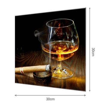 Material: 4mm Sicherheitsglas mit Metallrückwand Eigenschaften: beschreibbar, magnetisch, kratzfest Maße: 30x30x0,6cm, 1,89 kg schwer Motiv Nummer 10163 Whiskey & Cigar Zubehör: inklusive 4 Neodym-Magnete