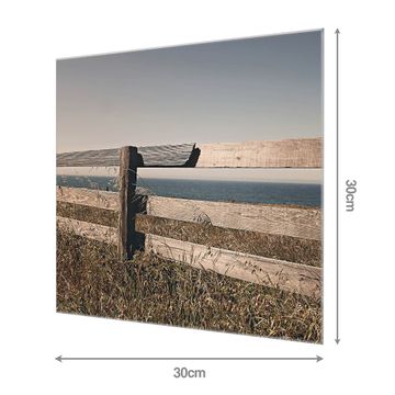 Material: 4mm Sicherheitsglas mit Metallrückwand Eigenschaften: beschreibbar, magnetisch, kratzfest Maße: 30x30x0,6cm, 1,89 kg schwer Motiv Nummer 11906 Zaun am Meer Zubehör: inklusive 4 Neodym-Magnete