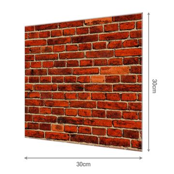 Material: 4mm Sicherheitsglas mit Metallrückwand Eigenschaften: beschreibbar, magnetisch, kratzfest Maße: 30x30x0,6cm, 1,89 kg schwer Motiv Nummer 10099 Ziegelwand Zubehör: inklusive 4 Neodym-Magnete